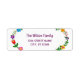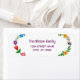 En familjs adressetikett för anpassningsbar av snyggt (kan även anpassas för en person), med en blommigt runt det lämnat och höger kant, och med en elegant, contemporary, handskrivet informellt skript för familjen namn eller personens namn.