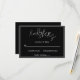 Detta eleganta svarta och vita RSVP-kort är perfekt för ett modernt bröllop. den enkla designen har elegant vit kalligrafi på svart bakgrund.