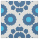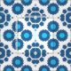 Sömlös geometrisk mönster med geometriska former i blå skuggor på vit bakgrund.
