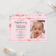 En elegant och en inbjudan för sötfotochristening som du kan personifiera och överföra ut för ditt christeninghändelsefirande. All text är uppsättningen genom att använda populär typografi i svart färg. Textfärg kan ändras genom att använda EDITEN fungerar. Ta prov fotoet kan bytas ut. En blommönster kompletterar baksidaen av kortet på en mjuk rosa bakgrund.