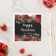 Pretty Christmas party napkin with red flowers and green foliage. The words can be changed to suit your own details or requirements. Would be perfect for a Christmas dinner party or holiday party.