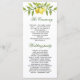 Elegant Citron Grönska Bröllopsceremoni Program. Använd mallfälten för att lägga till din ceremoni och bröllopsfestinformation, och klicka sedan på "Anpassa" för att flytta om element om det behövs. Behöver du hjälp? Kontakta mig via länken "Fråga designern" på denna sida.