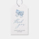 Elegant Clasic Gingham Blue Bow Baby Shower Tack Presentetikett