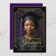 Celebrate a milestone moment with this elegant "Class of 2026" portrait-style graduation announcement. Featuring a dramatic black background, refined gold accents, and an ornate frame design, this vertical layout showcases the graduate’s photo in a timeless, formal presentation. Personalized with the graduate’s name, school, and class year, this design creates a polished keepsake perfect for honoring high school or college achievements. Ideal for sharing with friends and family, this sophisticated graduation announcement highlights pride, accomplishment, and the beginning of a new chapter. Back Background is dark purple.