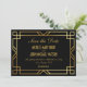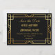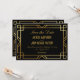 * ICKE-FOIL * Anteckna ditt kommande bröllop i tidlöst stil med det här anpassadet svart och guld Art Deco Spara datumkortet. Det här klassiska kortet är inspirerat av den Underbara Gatsby- och 1920-talets elegans och har en vintage med guld-utseende ram och faux guld på en slimmad svart bakgrund. Observera att guld inslag är en platt tryckt formgivning, inte metallfolie. Med det här icke-fotosparande datumkortet får du en modern kontakt med ett QR-anpassade på baksidan, vilket skapar det enkelt för dina gäster att komma åt webbplatsen för bröllop. Anpassa framsidan med namn, datum, plats och andra viktiga detaljer i bröllop. Perfekt för formellt, modernt eller klassiskt bröllop, det här snyggten anger tonen för din speciella dag med sofistikering och charm.
