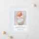 Den här enkla men elegant födelsepromemorian har ett lodrät, en vacker typografi och en klassisk blått gingham mönster ram. Du kan anpassa den här designen ytterligare genom att lägga till ett annat foto eller ytterligare text på baksidan.