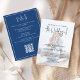 Den här designen har en klassisk kalligrafi-elegant QR-OSA-fotobröllopsmall, med en enkel blå blommigt-blommmall, ett klassiskt foto för onlinens gästsvar, ett vanligt kalligrafiskt skript, minimalistisk typografi boho-svit, klassvis modern minimal, med en skannerbar QR-kodwebbplats, enkel digitalnedladdning, fotovellum transparent effekt, en elegant klassisk stationär stationär mycket svit