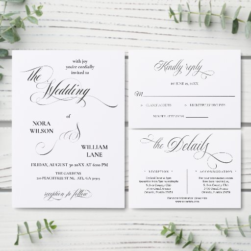 Elegant Classic Calligraphy Wedding Invitation Inbjudningar