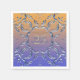 Elegant och papper napkin-design för unik personlig med ett ornat blått metalliskt ram på en övertoningsorange mot lilans bakgrund. Texten är helt och hållet anpassade. Om du vill ändra användan väljer du Anpassa. Om du vill ha fler ändringar, t.ex. ändringar i teckensnitt, teckensnitt färg eller textlayout, användor du alternativet Redigera design verktyg.