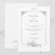 Denna klassiska svit av historiska dekorativa mönster inspireras av 1800-talets festningar av den Fransk målaren Alexis Peyrotte, som har ett lätt grått på den vita ram av acanthus löv, ornerade scrollsar, blommor och löv. Denna samling är perfekten som kompletterar ett elegant, ett formellt och romantiskt bröllop. Baksidan har kompletterande grafik för blommigt och valfri text fält för webbplatsen adress.