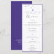 En enkel meny i elegant bröllop som innehåller parets namn och ett bläck-tryck av en vatten-scen med vågar, en liten båt och fiskmås. Ett underbart val för ett badbröllop, ett strandspolat bröllop, ett kustnära bröllop, ett sjö bröllop, ett bröllop vid vatten kant, en båt eller ett yacht bröllop eller en kryssningsbröllop.