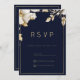 Elegant classic navy blue gold floral RSVP Inbjudningar