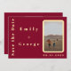 Den här eleganten och det moderna fotot sparar datumet som inbjuds Med en sjudande burgundisk bakgrund, och inbjudan kommer säkert att skapa ett påstående. Snyggtens utformning visar ett romantiskt par i en båge med lyxtypografi av guld. Typografin tillför en aning sofistikering och ritar öga till det vackra fotona till paret. Anpassade till kostym för era specifika behov, denna inbjudan är perfekten för att tillkännage era kommande nybörjare i stil. Boka inte för en smaklös, tråkig inbjudan - gör en påstående med det här vackra fotot och spara datumet.