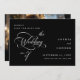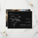En elegant svart och vit spara bröllop-till-datum med romantisk, snabb kalligrafisk text med valfri text och ett foto på baksidan. Perfekt för alla säsonger. Om du vill ha en mer avancerad anpassning av den här designen klickar du på BLUE DESIGN VERKTYG ovan!