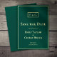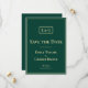 Gör ett bestående intryck med den här moderna tekniken och spara datuminbjudan med typografi av elegant guld, ett monogram för snyggt och en bakgrund för grönt av klass som framträder. Den enkla utformningen och utformningen av anpassadet gör att du kan matcha ditt bröllop-tema genom att välja vilket färg som helst. Berätta för dina gäster om din speciella dag med den här chicen och snyggten. Monogrammet lägger till en personlig beröring och skapar den här Spara datuminbjudan till komen i flera år. Fira din kärlek i stil med den här moderna besparingen datuminbjudan.