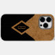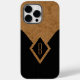 © Sunny Mars Design. Monogram Black och Tan Fodral-Mate Telefonväska - Elegant, klass, snyggt, professionell anpassningsbar med abstrakt antika gamla pappra, trasa eller läder och svart streck och diamantform. Anpassa den genom att lägga till din egen brev.
