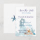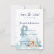 Set a romantic tone for your seaside nuptials with this ethereal "Save the Date" card. This design features a dreamy silhouette of a bride and groom integrated into a soft blue watercolor wash, accented by a vibrant underwater scene. Perfect for destination weddings, beach ceremonies, or tropical celebrations, this card is easily customizable with your wedding details for a stunning first look at your big day.