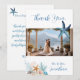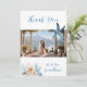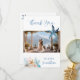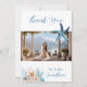 Express your gratitude with this elegant coastal-themed wedding "Thank You" card. This design features a vibrant watercolor under the sea scene, and a central placeholder to showcase your favorite wedding photo. The reverse side includes a heartfelt message in beautiful blue calligraphy, which can be fully personalized.