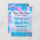 Elegant Colorful Blue Rosa Watercolor Bröllop spara datum har en modern, vacker, blå rosa-pastellcirkelformad bröllop-design som du kan skicka till din gäst. Anpassa den med din information.