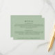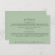 Den här elegant bröllop-informationen/informationskortet har en underbar bakgrund av grönten och vintage-inspirerad typografi. Kortets baksida är samma grönt färg med en hand plockade-konfektyrbild - till vilken du också kan lägga till ytterligare text om det behövs. Den här designen skulle vara ett fantastiskt val för ett vår, sommar eller faller bröllop. Hela färgen av den här designen är anpassade. Se samlingen för samordnande artiklar!