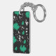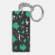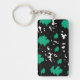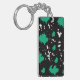 This keychain features an abstract design of irregular shapes resembling green and black spots on a white background, blending creativity with minimal elegance.