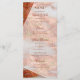 Den här eleganten och det formella glitter-kopparbaserade, geometriska, bröllop 2-sidiga receptionsmenyn med faux-handskript är både klassiskt och modernt. Kortets baksida har en extra vit övertäckning så att du kan lägga till mer text, om du vill (genom att anpassa med Verktyg i Design.) Enkel att anpassa med din egen information på mottagningsmenyn.