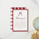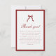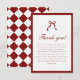 Elegant Coquette Bow Checkered Graduation Party Thank You Card. A classic and formal, wine red and white coquette graduation thank you card, designed with a bow, checkered pattern, and script lettering. Personalize with a custom thank you message for friends and family.