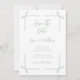 Elegant Coquette Sage Green Bows and Vows Wedding Save the Date features a white background framed with delicate hand-drawn sage green bow illustrations in each corner, creating a romantic and refined aesthetic. The combination of flowing script typography and classic serif text gives the layout a timeless, elegant feel while maintaining a clean and minimalist composition. Subtle accents complement the gentle color palette, adding a calm and sophisticated touch.