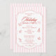 Elegant Blåpartiets Helgdag under juldagen har en helt vit inslag på rosa och vit strimlad bakgrund med texten "Helgdag Middag Party" i elegantens röda kalligrafskript. Snyggt, trendig och chic för företagets Julfest. Skapat av Evco Studio www.zazzle.com/store/evcostudio