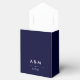 Den här eleganten har snyggtens favoritruta för bröllop modern vit text på en mörk, marin blå färgad.