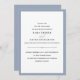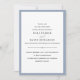 Den här eleganten, snyggtens bröllopsinbjudningar, innehåller chic svart text på vit bakgrund, avgränsad i dammig blå.