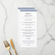 Den här eleganten har menyn snyggt bröllop med chic svart text på vit bakgrund, kanterad med dammblått.
