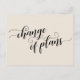 Med det här enkla kortet kan du välja bakgrund färg (om du vill ändra något!) medan du har det här fantastiska teckensnittet. På fronten står det "ändrad planering" med hjälp av ett söt-skript med snurra och vinkara. I baksidan finns platshållare för mallar med information om matchande accent ord med calligraphy-teckensnitt. Använda den här mallen fält för att lägga till dina personuppgifter och ändra mitt förslag till formulering till kostym för dina behov och din situation. 99 //