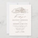 Rustiska bröllopsinbjudningar med en skisserad illustration av en brun lada som visas högst upp på inbjudan på en gräddbakgrund. Lingbröllopsinbjudningarna har elegant brun kalligrafi inslag under hela designen. Anpassa krämen och bruna bröllopsinbjudningar med uppgifter om namn och bröllop.