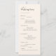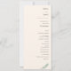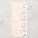 Ordningen för ceremoni och bröllopsfest finns på krämbakgrunden. Fintvätt löv vid grund höger..