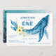 Elegant Cute Blue Whale Gult Blommigt 1:a födelsed Inbjudningar