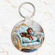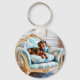 Elegant dackel på lyxig fåtölj med monogram nyckelring