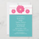 Modern och elegant Uppmaning till Elegant Gerbera Daisy Möhippa med en trio vackra och livfulla magenta gerbera-daisy för rosa och en elegant gräns och ett turkostigt textområde. Den här designen är klassisk och chic och bara perfekt för en blommigtens tematiska möhippa! Anpassa den här vackra inbjudan med information om bröllop.