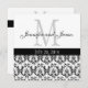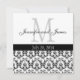 Elegant Damask Monogram Bröllopsinbjudan B & W Inbjudningar