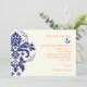 Elegant damast marinblå, korall, elfenbensvit vigs inbjudningar