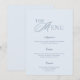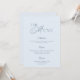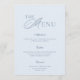 Elegant dammigt blått bröllopsmenykort med raffinerad scripttypografi och en minimalistisk design. Perfekt för sofistikerade bröllopsreceptioner, trädgårdsbröllop och klassiska firanden. Denna tidlösa meny lägger till en stilren och koordinerad touch till din bröllopsdags bordssättning.