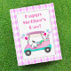 Denna unika vara visar en dekorerad golfkärra för en golfande Mors dag! Denna färgglada golfkärra transporterar presenter, tårta och gnistrande Champagne. Detta är ett roligt Mors dag-kort att ge till någon som lever och andas golf!