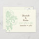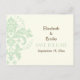 Elegantens fuktig grönt, brunt vykort för elfenben bröllop spara datum. Ett modernt men klassiskt bröllop-mönster med återtändning. Fintvätt, med eleganten parisiskt typsnitt och en vintage som känner av det, perfekt för en contemporary eller traditionell vår eller sommar bröllop.