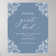 Visa denna eleganta dammblå bröllopsfoto gästbokssköld vid din bröllopsfotobås på din mottagning. Denna eleganta bröllopssköld har en vintage-design i hörnen och är perfekt för ett klassiskt och sofistikerat dammblått bröllop. Se fler matchande produkter nedan.