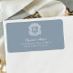 Elegant dammblå monogram vapensköld bröllopsadress adressetikett