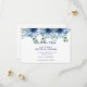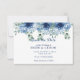 Tillkännage din kommande bröllop med stil med detta eleganta Save the Date-kort. Med en frodig kant av dammiga blå peonior och mjuka gröna eukalyptusblad, erbjuder denna design en romantisk och tidlös estetik. Den klassiska marinblå typografin är enkel att anpassa med era namn, datum och plats för att ge era gäster en vacker första inblick i er bröllopstema.