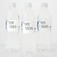 Elegant dammig blå akvarellblomsterbukett vattenflaskor etikett