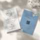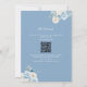 Ömtålig vit och dammig blå blommig monogram vapensköld QR-kod allt i en bröllopsinbjudan.