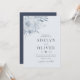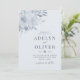 Bjud in vänner och familj till er vigsel med denna eleganta inbjudan, med bläckblå blommor på en dammig blå bakgrund.