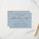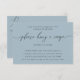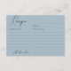Detta stilrent minimalistiska receptkort har elegant svart kalligrafi på en mjuk dammig blå bakgrund och ger en snygg och modern touch till alla bröllopsdusch. Dess rena och sofistikerade design är perfekt för att samla favoritrecept på ett smakfullt och raffinerat sätt. Ett underbart sätt för gästerna att dela sina älskade rätter med den blivande bruden, detta kort blandar tidlös stil med hjärtlig känsla och skapar ett speciellt minne för tillfället.